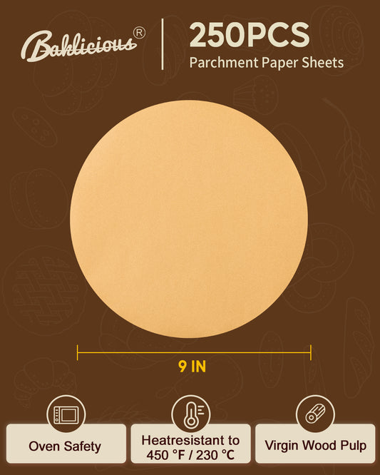 Baklicious 250 Count 9 inch Round Parchment Paper, Non-Stick Baking Liners for Cake Pans