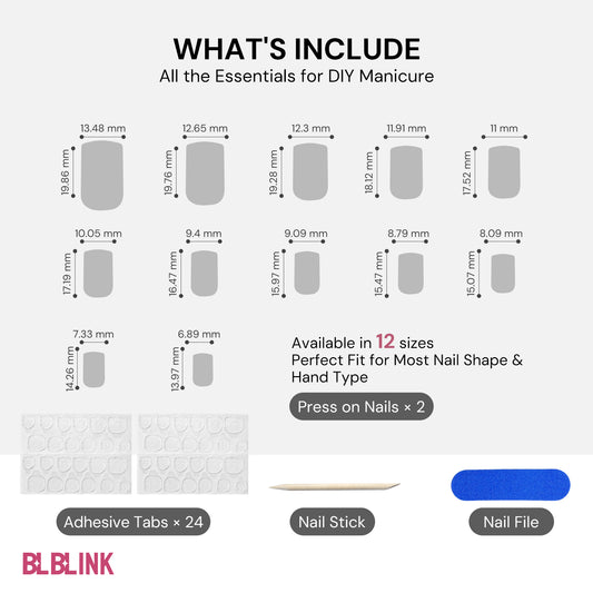 BLBLINK 3D Press-On Nails, 24PCS Square Shape with Floral Leaf Design, Reusable & Salon-Quality