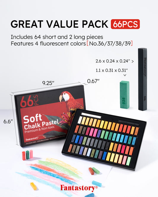 Fantastory Christmas Short Soft Chalk Pastels Set, 66 Sticks,Includes 4 Fluorescent Colors,Non Toxic Soft Pastels for Artists,Kids,Beginners,Students,Classroom,Drawing,Blending,Layering,Art Supplies