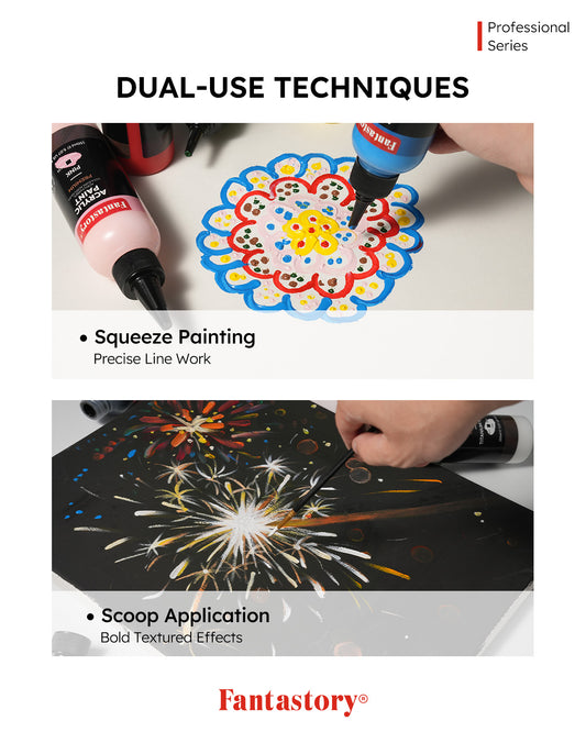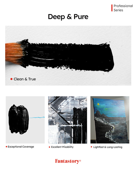 Fantastory Precision-Pro Acrylic Paint - Black (150ml/5oz) - Lab-Tested Color Accuracy + Superior Coverage, Professional Choice for Canvas/Wood/Clay/Textile/Pottery