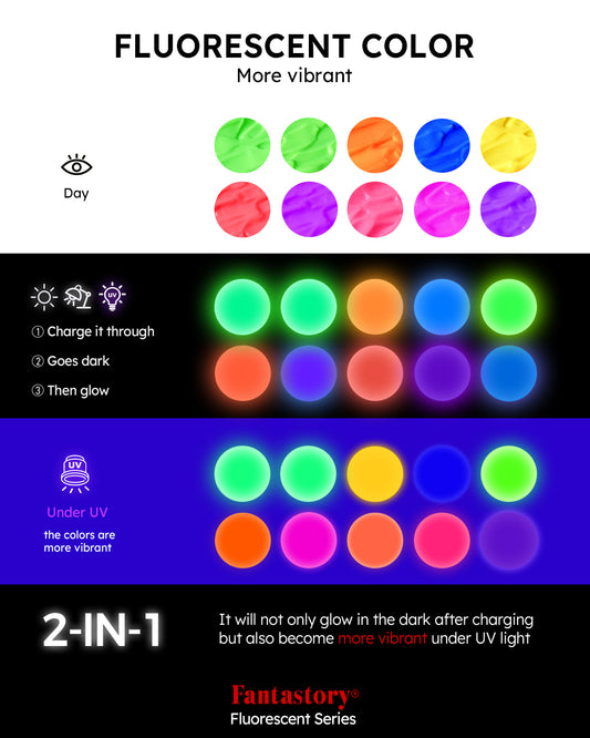 Fantastory Glow in the Dark Paint, Blacklight Acrylic Craft Paint Set,1oz/10 Piece