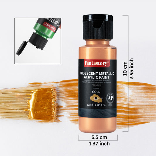 Fantastory Metallic Iridescent Acrylic Paint Set with 12 Brushes, 12 x 2oz Metallic Colors, Color-Shifting, Craft Paint Kit