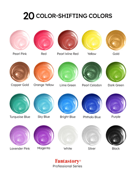 Fantastory Metallic Iridescent Acrylic Paint Set with 12 Brushes, 20 x 2oz Metallic Colors, Color-Shifting, Craft Paint Kit, Metal/Canvas/Rock/Stone/Ceramic/Model/Wood Painting