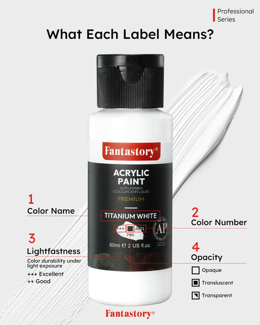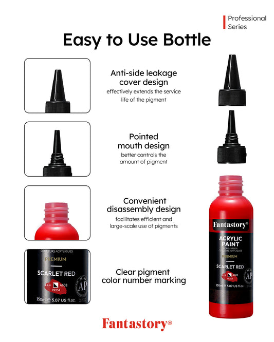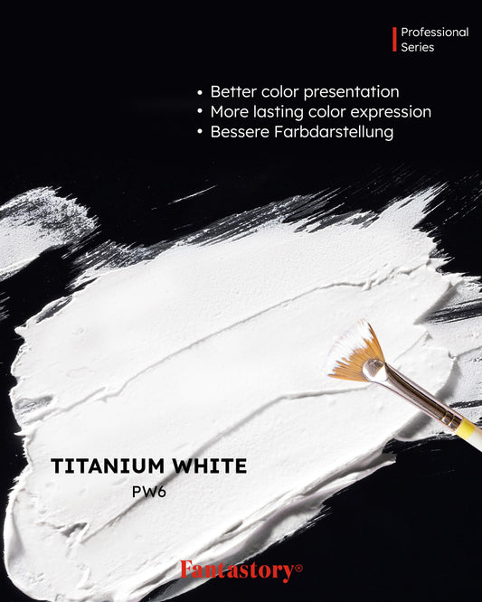 Fantastory Professional Titanium White Acrylic Paint (150ml/5oz) - Ultra High Coverage with Precision Color Accuracy, Artist-Grade Formula for Canvas/Wood/Clay/Fabric/Ceramic