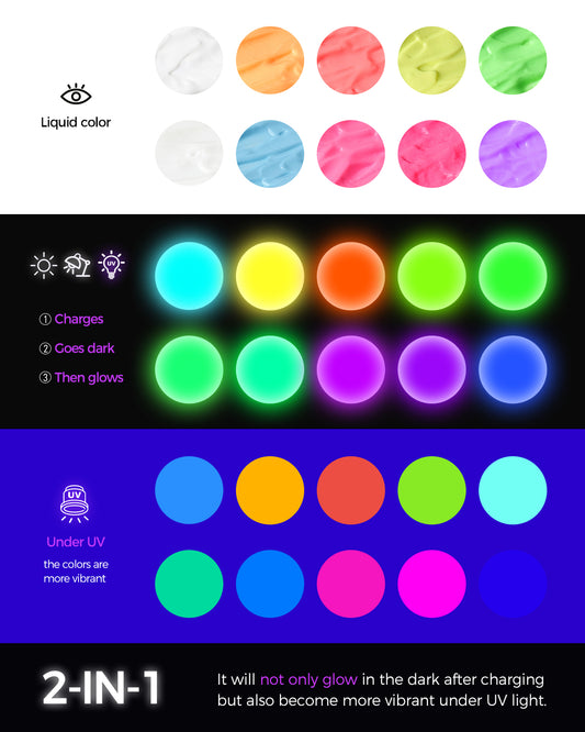 Fantastory Glow in The Dark Paint - 10 Extra Bright Colors 60 ml / 2 oz Glow in Dark Acrylic Paint
