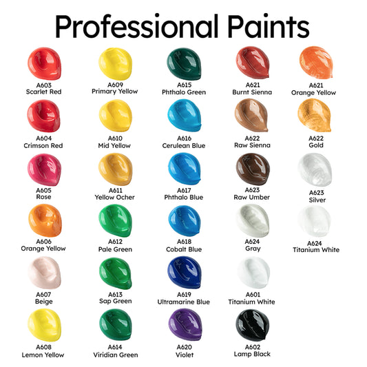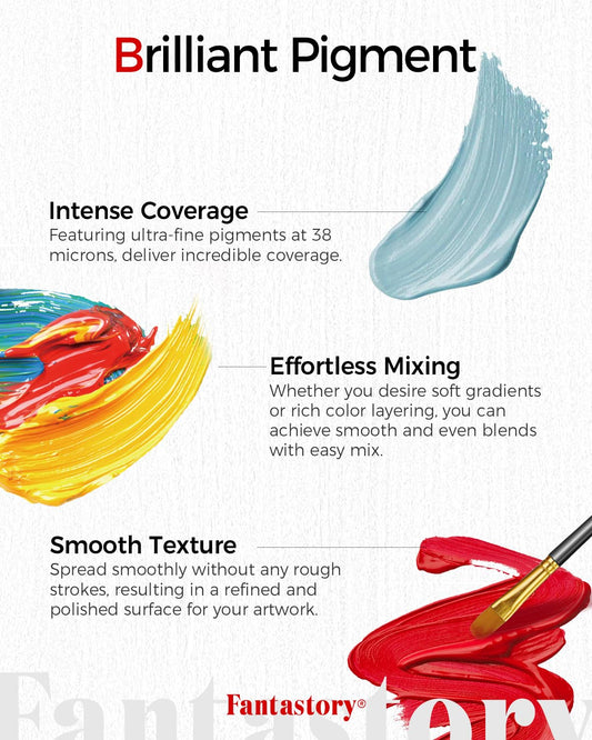Fantastory Acrylic Paint Set, High Pigment, Quick Dry, Waterproof, 24 Colors with Metallic and White