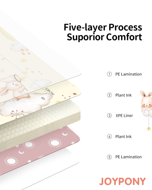 Joypony Baby Play Mat, Foldable Reversible Foam Crawling Mat for Baby Toddler Indoor Outdoor, 79x71x0.4 inch, Rabbit