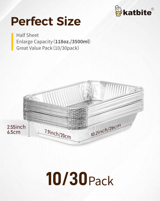 Katbite 9x13 Aluminum Foil Pans, 30 Count Half Steam Loaf Aluminum Foil Pans Set