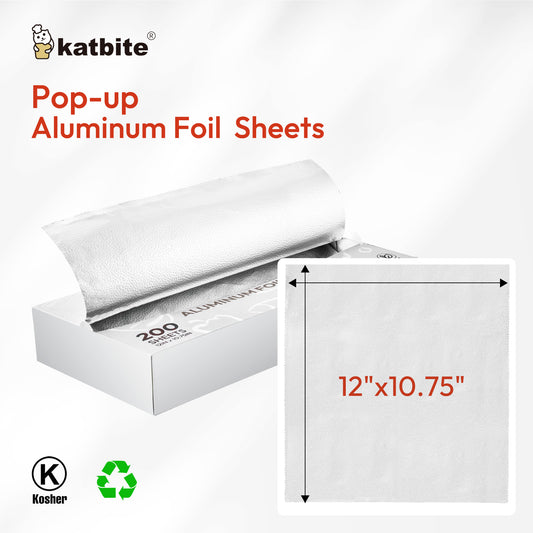 Katbite Pre-Cut Aluminum Foil Sheets, 200 Disposable Pop-Up Foil Wraps, 12 x 10.75 inches