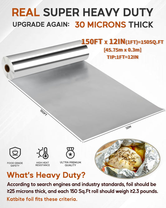 Katbite Aluminum Foil Heavy Duty Aluminum Foils Roll with Serrated Cutter,12inx150SQ.FT