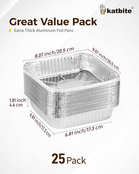 Katbite 8 x 8 Aluminum Foil Pans, 25 Count Disposable Square Aluminum Cake Pans