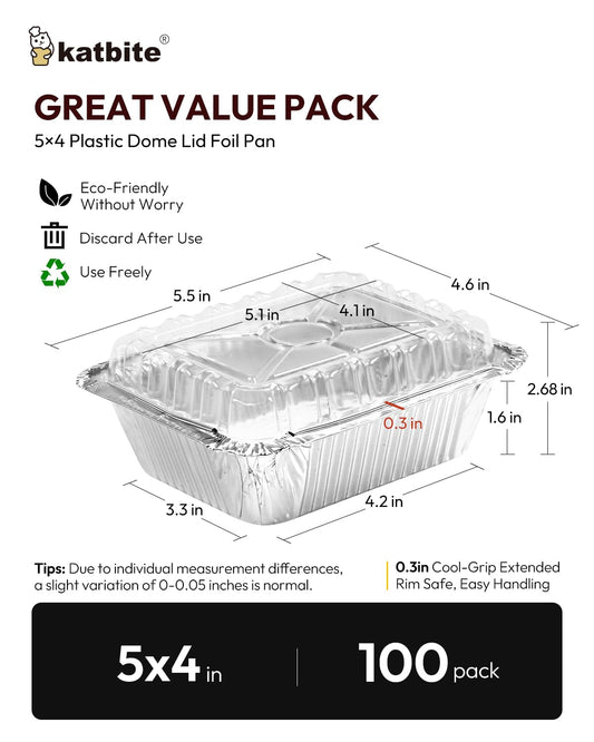 Katbite 100 Count 1 Lb/16 Oz Aluminum Pans (5" X 4"), Mini Aluminum Pans With Lids, Disposable Aluminum Foil Pans