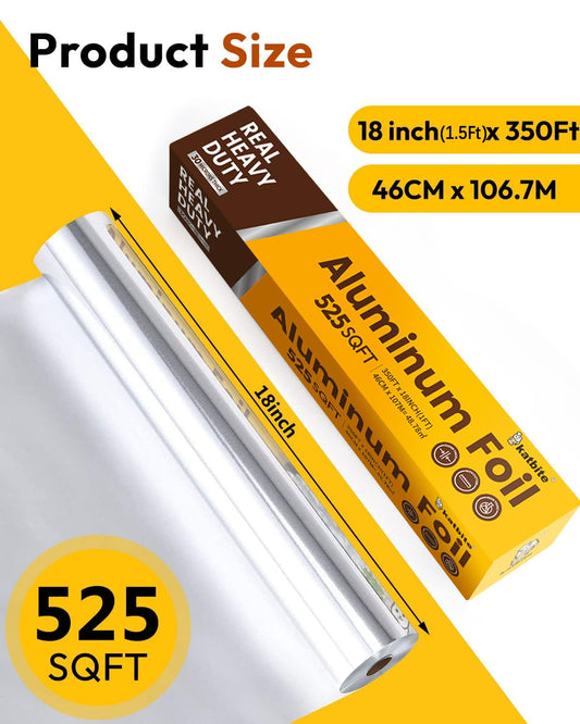 Katbite Heavy Duty Aluminum Foil 30 Micron Thick Strong Heavy Duty Foil Aluminum Roll Food Wraps,18 inch,525 Square Feet
