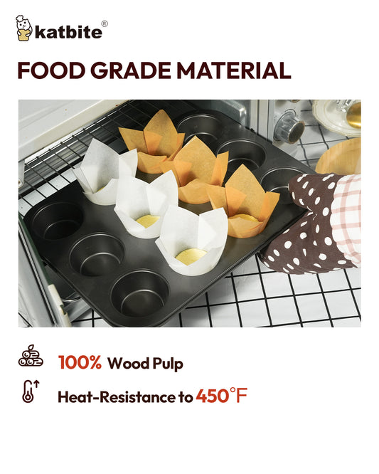 Lotus Tulip Cupcake Liners 200pcs - Katbite Premium Parchment Baking Cups, Non-Stick & Heat-Resistant, Perfect for Parties, Weddings, Birthdays, Christmas, Baby Showers