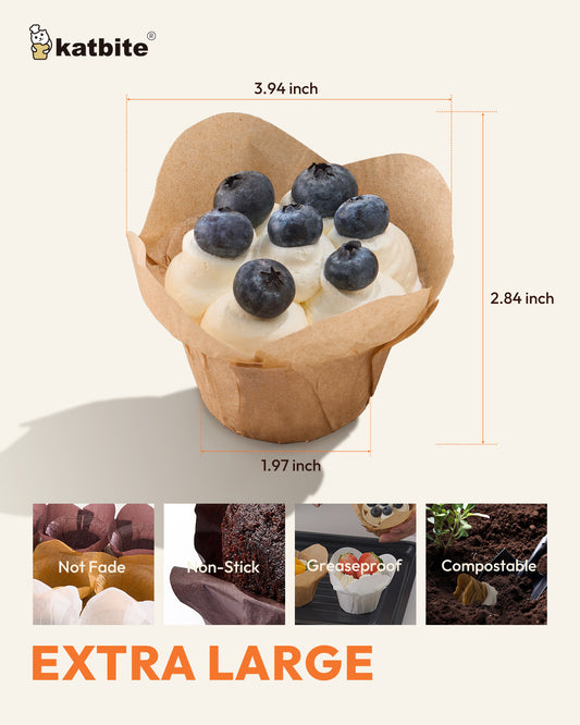 Katbite 200 Pcs Natural Tulip Cupcake Liners – Standard Size, Food-Grade Baking Cups, Double-Sided Silicone Coated for Quick Release
