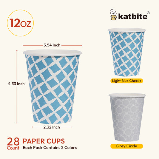 Katbite Biodegradable Disposable Paper Cups, 12oz, 28 Count