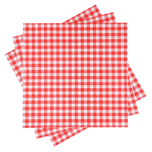 Katbite Disposable Paper Napkins Gingham Red and White, 6.5 inch, 50 Pcs