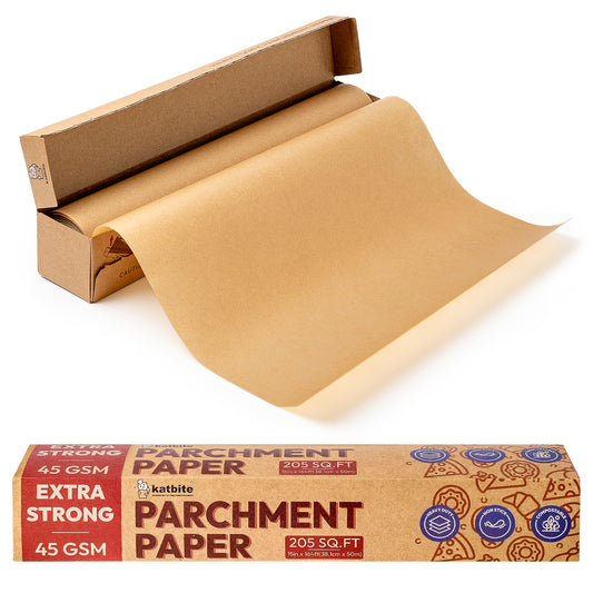 Katbite Heavy Duty Unbleached Parchment Paper Roll for Baking, 15 in x 164 ft, 205 sq.ft, Brown