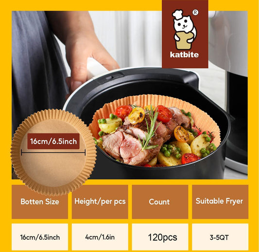 Katbite 120Pcs 6.5 Inch Unbleached Non-stick Air Fryer Disposable Paper Liner Parchment Paper