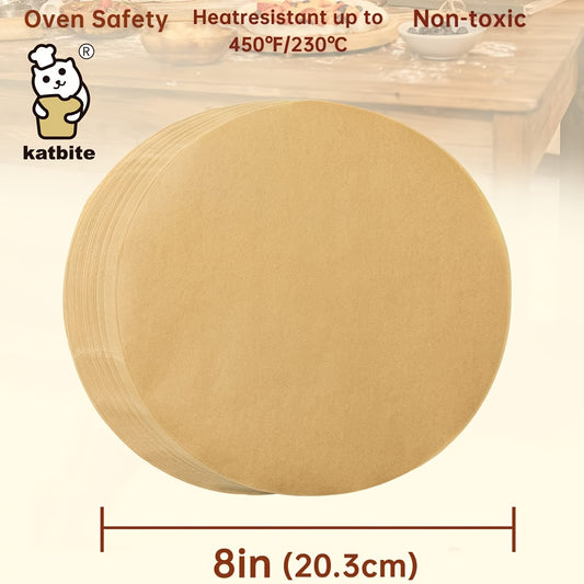 Katbite 200Pcs 8 Inch Parchment Paper Rounds, Unbleached & Non-stick, Precut Parchment Circles for Spring Pan, Storage/Freezing Hamburger Patties