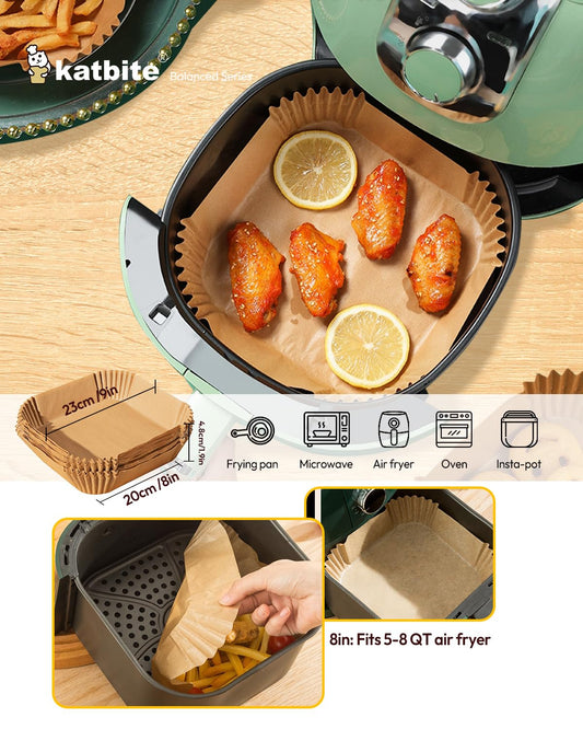 Katbite 8 inch 130pcs Air Fryer Liners, Non Stick Disposable Paper Liner Parchment Paper