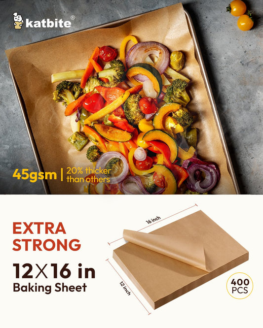 Katbite 400PCS Unbleached Parchment Paper Sheets, 12"x16" Pre-Cut, Heavy Duty, Non-Stick Baking Paper