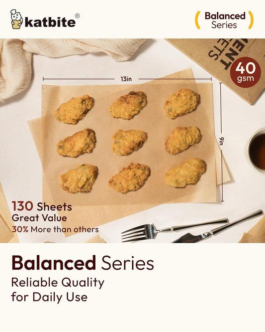 Katbite 130 Pcs 9x13 Inch Unbleached Parchment Paper Sheets, Non-Stick, Balanced Series