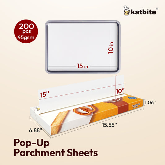 Katbite 200-Count 10x15 Inch Pop-Up Parchment Paper Sheets: Compact, Heavy Duty, Non-Stick