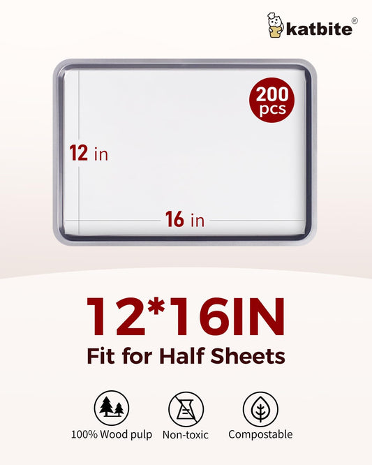 Katbite Heavy Duty Unbleached Parchment Paper for Baking, 12x16 inch, 200 Pcs