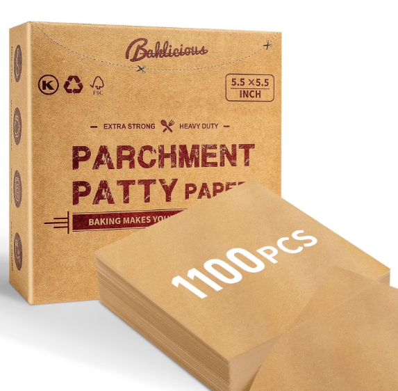 Baklicious 1100 Count 5.5 x 5.5 inch Square Patty Paper Sheets, Unbleached Parchment, Non-Stick & Heavy Duty
